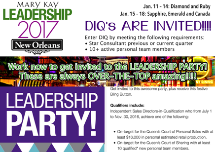 Independent Beauty Consultants can earn double credit for up to 6 qualified new personal team members whose agreements was received and accepted in October 2016 and who place their initial orders of $600 or more in wholesale Section 1 products in October or November 2016 toward the Queen’s Court of Sharing. See InTouch for complete details.